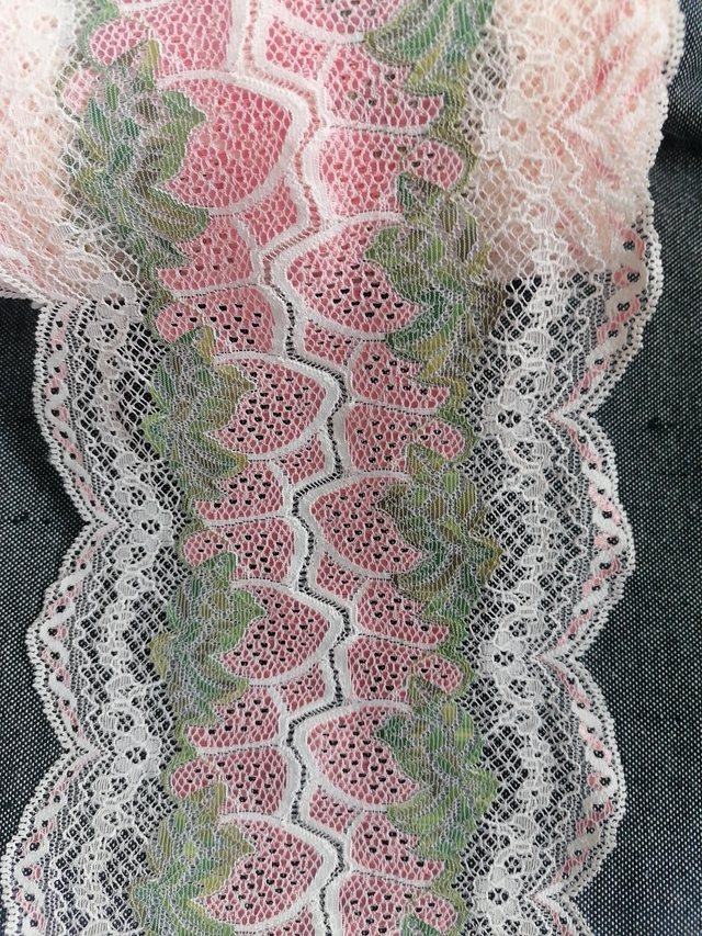 Dentelle elasthane fraise sur fond saumon 15cm de large